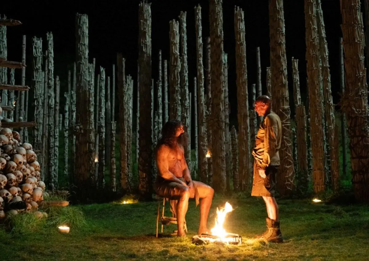 La película nos muestra un mundo abierto, como en todas sus entregas, pero profundamente opresivo. Ritual, simbólico, violento. Templo de Huesos es una película que enfrenta al ateísmo y a la religión — además de ser optimista, pero ya llegaremos a eso —, no porque niegue toda creencia, sino porque expone cómo, incluso sin dioses, seguimos necesitando estructuras que nos expliquen el mundo.