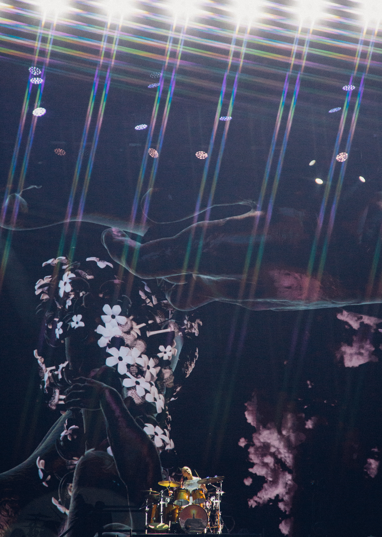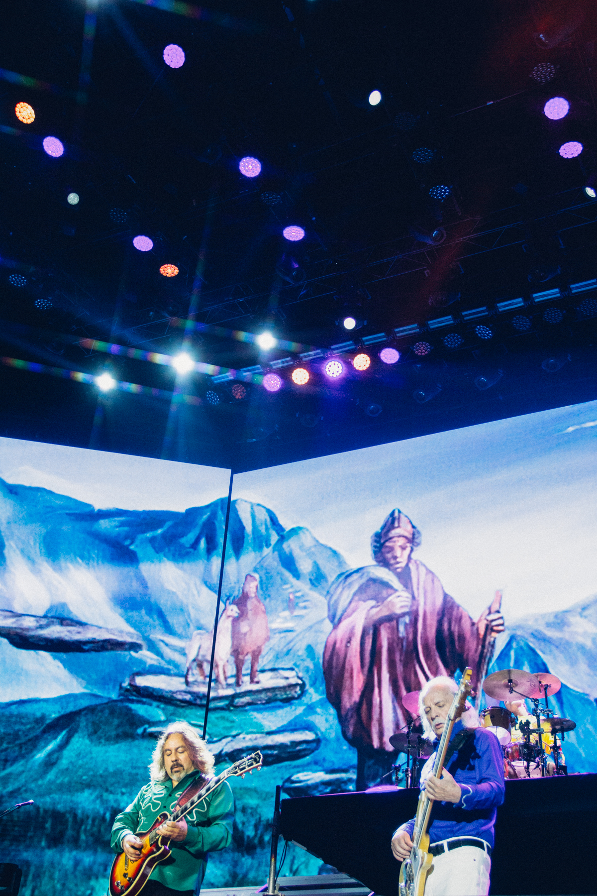 El concierto comenzó con cerca de cuarenta minutos de retraso, pero apenas las luces bajaron alrededor de las 21:45, la espera se evaporó. La apertura incluyó un sentido homenaje a René Olivares, el artista detrás de las icónicas ilustraciones de Los Jaivas, cuya obra sigue dando forma visual al imaginario de la banda.