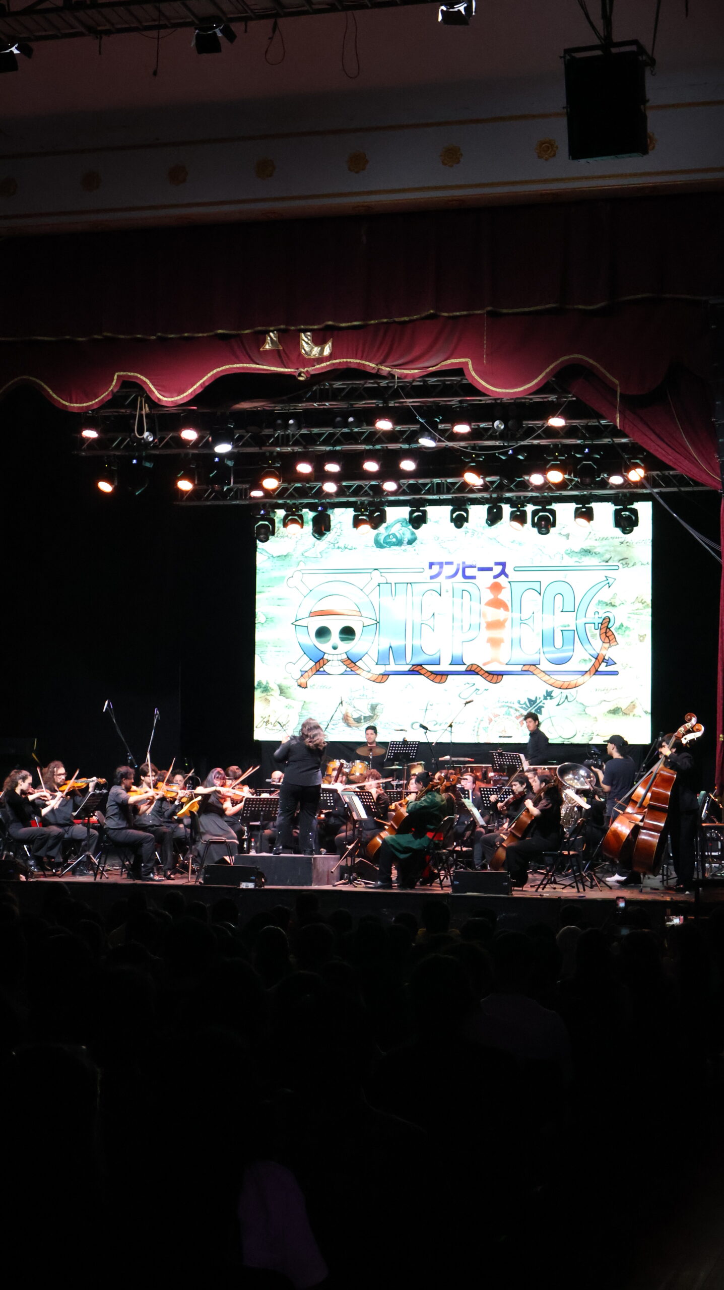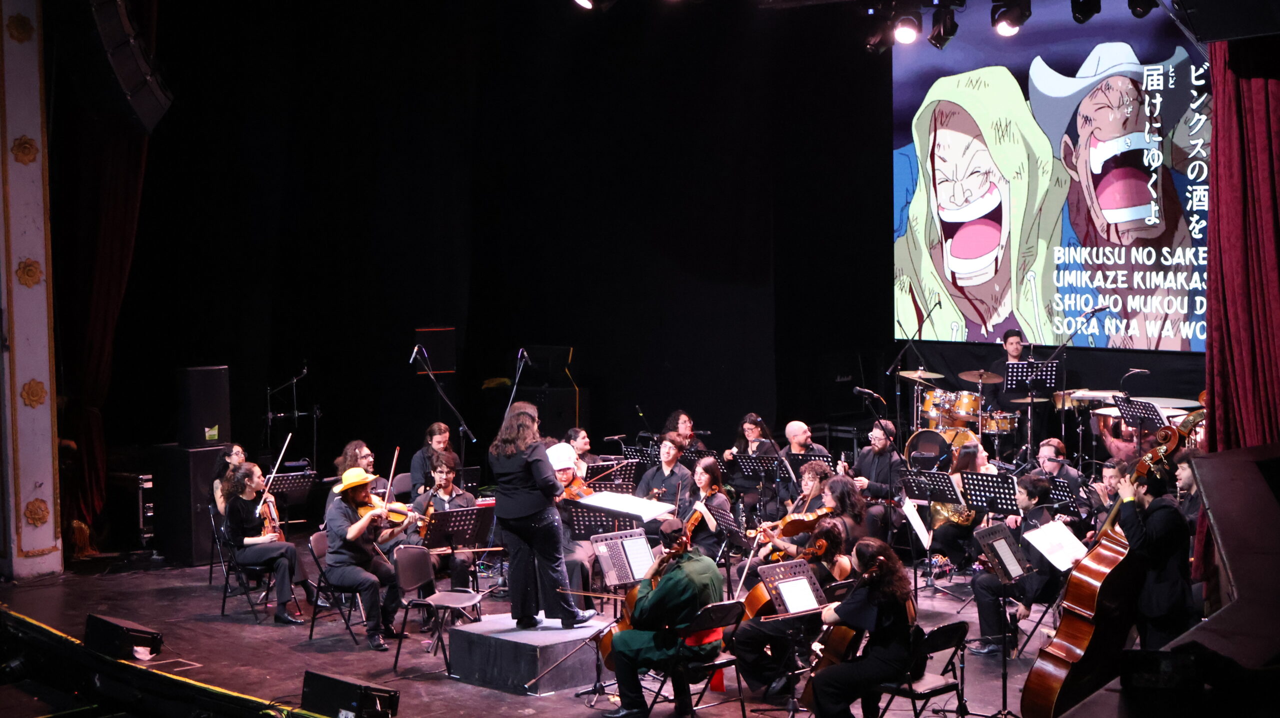 A medida que avanzaba la presentación, el Teatro Cariola se iluminaba —literal y simbólicamente— con cada melodía reconocible. La dirección musical fue maestra al guiar al público a través de los arcos narrativos más significativos. Desde los primeros acordes de Overtaking que anuncian un nuevo destino, cada fan supo exactamente a qué parte del viaje de Luffy estaba siendo transportado.